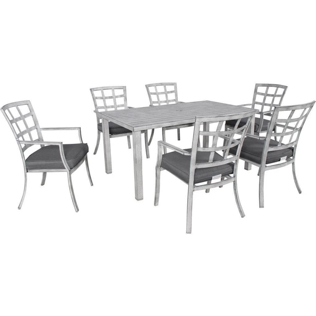 Hanover 7 pc. Spring Lake Dining Set with 6 Cushioned Aluminum Chairs and Slat Top Table, SPRLKDN7PC-GRY