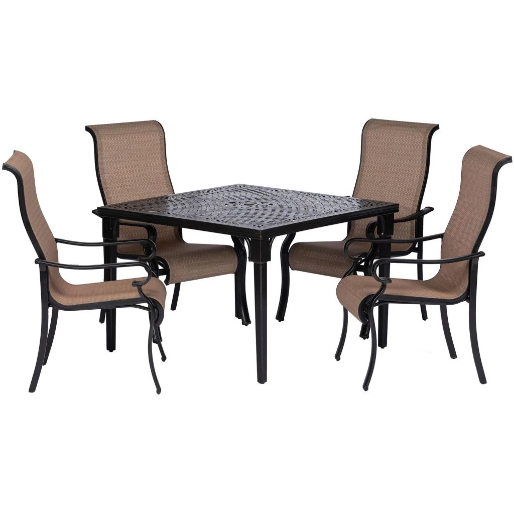 Hanover Brigantine 5 pc. Outdoor Dining Set with 4 Contoured-Sling Chairs and a 42 in. Square Cast-Top Table, BRIGDN5PCSQ