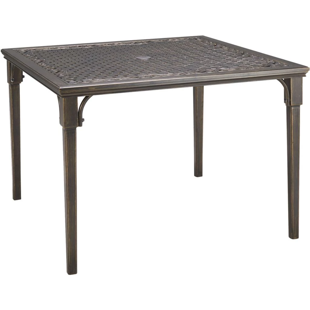 - A 2-inch diameter umbrella hole in middle of the patio dining table allows for optional shade (umbrella sold separately)