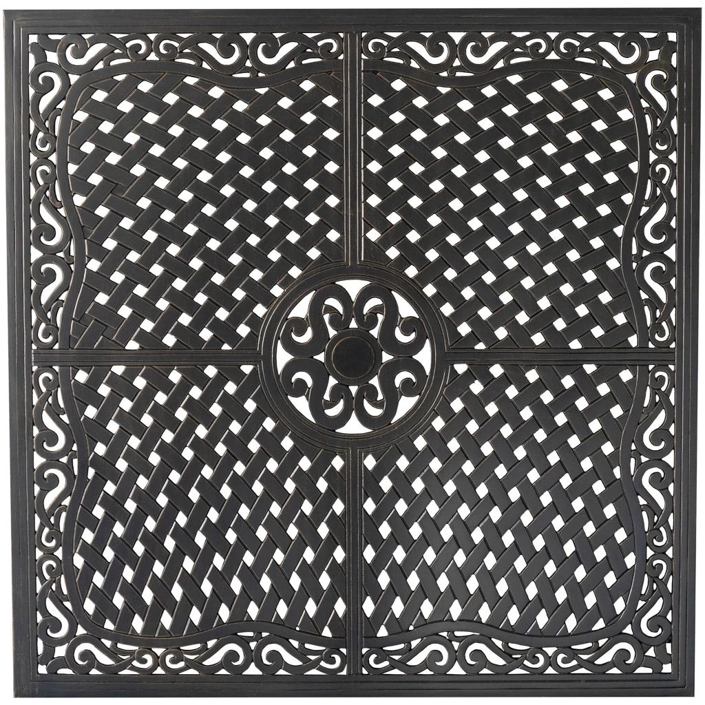 - An open-lattice design on the tabletop allows the water to pass through for a dry surface