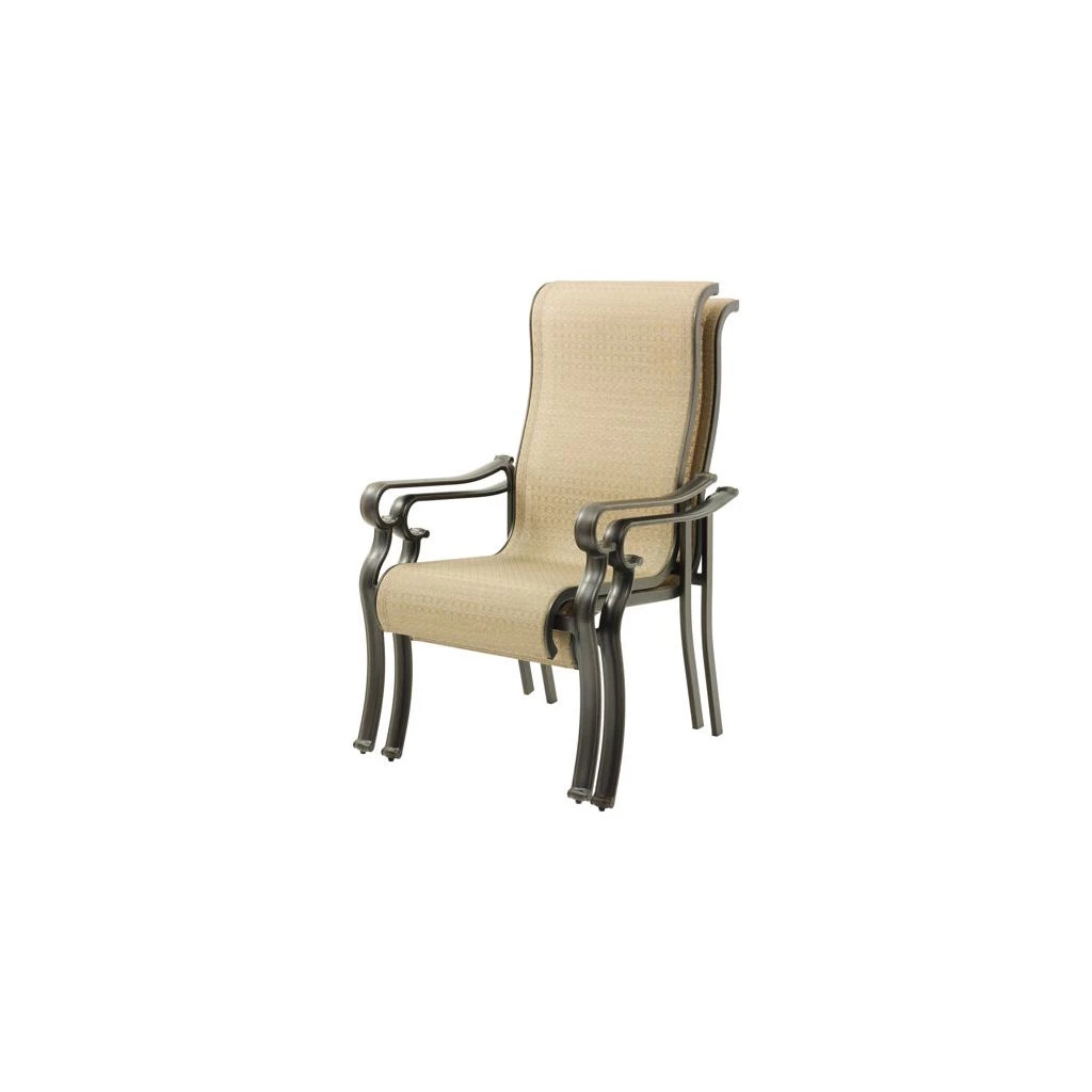 - Breathable Textaline sling fabric on the patio dining chairs provide strength, UV-resistance, and fast-drying abilities for poolside dining