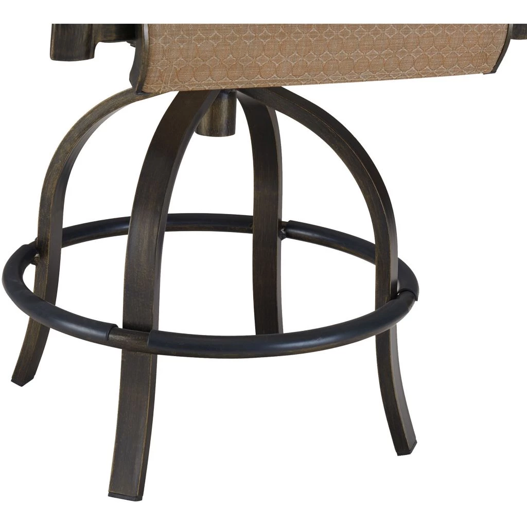 - This counter-height high-dining set includes 4 contoured-sling swivel outdoor dining chairs and a 50-in. round cast-top patio table