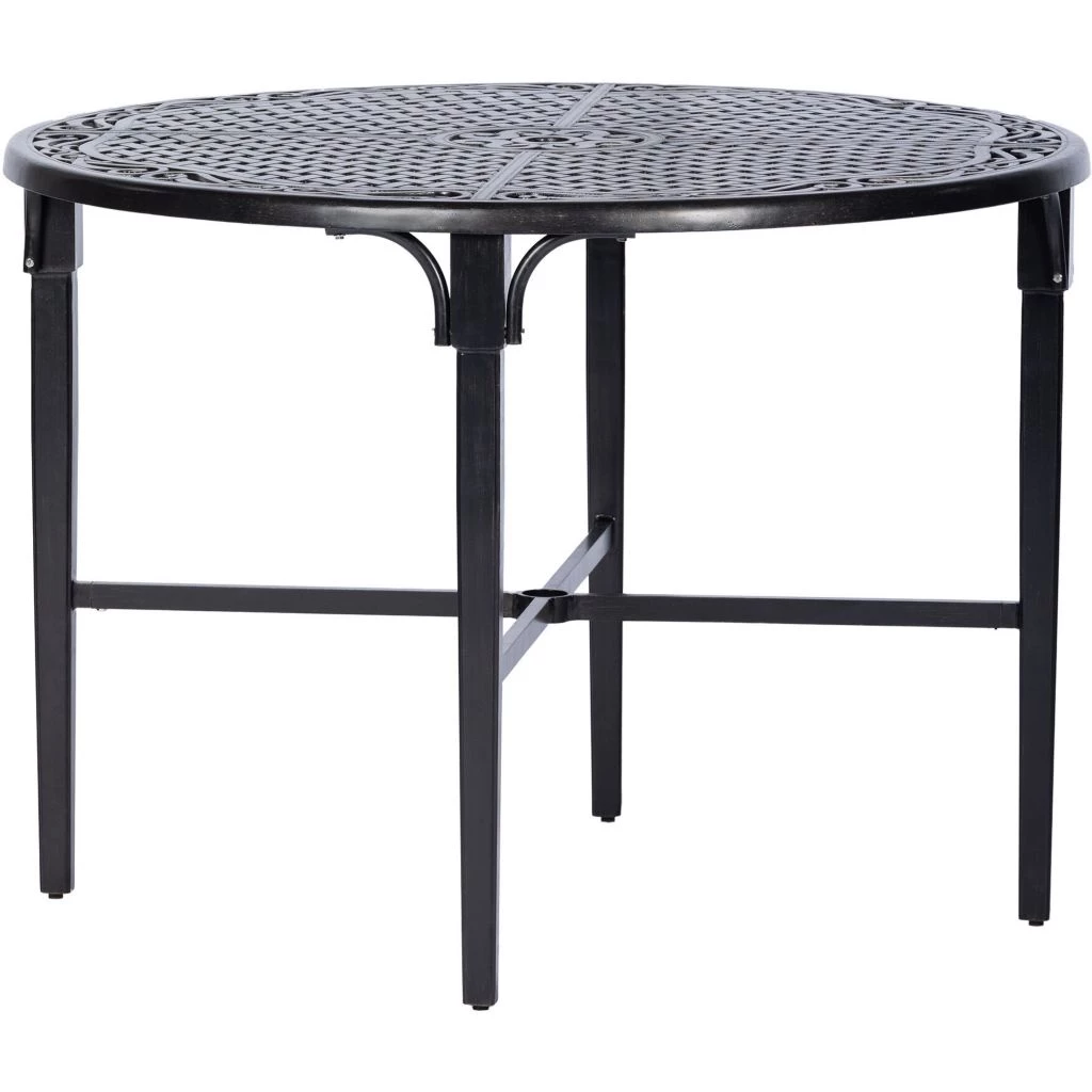 - A 2-inch diameter umbrella hole in middle of the patio dining table allows for optional shade (umbrella sold separately)