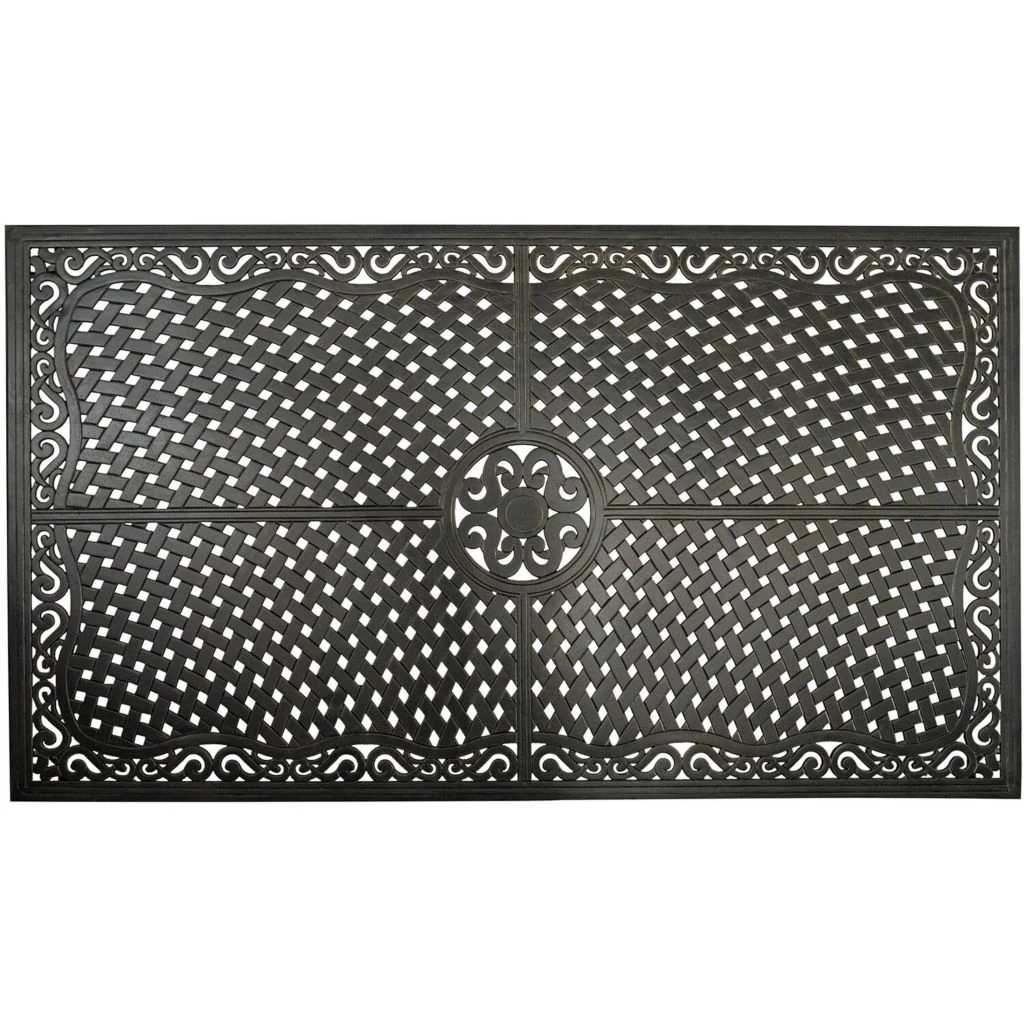 - Cast-aluminum table top features an open-lattice design that prevents water build-up