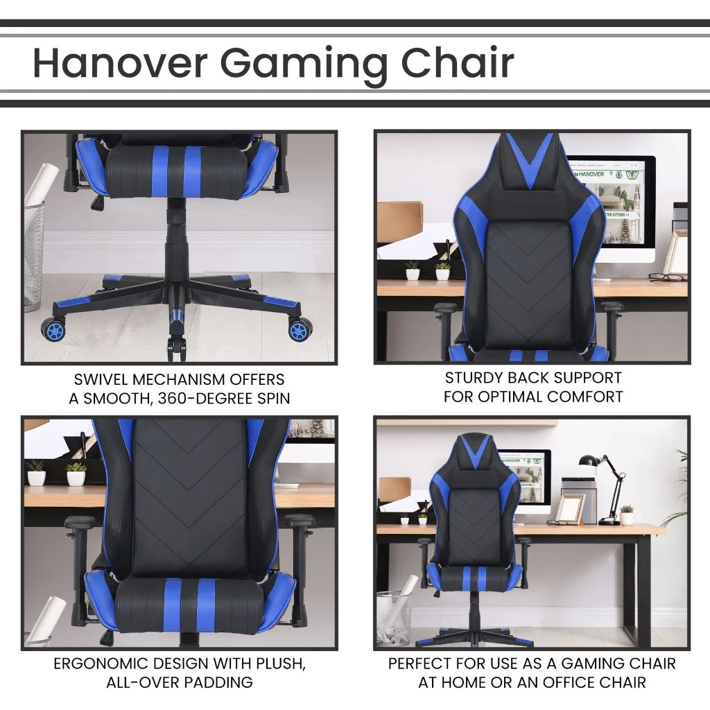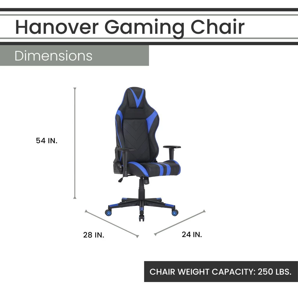 Hanover Commando Ergonomic Gaming Chair, Adjustable Gas Lift Seating, Lumbar and Neck Support, Black/Blue, HGC0109