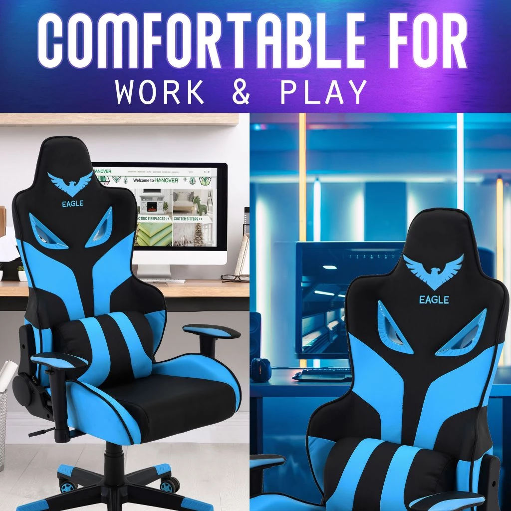 Hanover Commando Ergonomic Gaming Chair, Black and Blue, Adjustable Gas Lift Seating and Lumbar Support, HGC0101