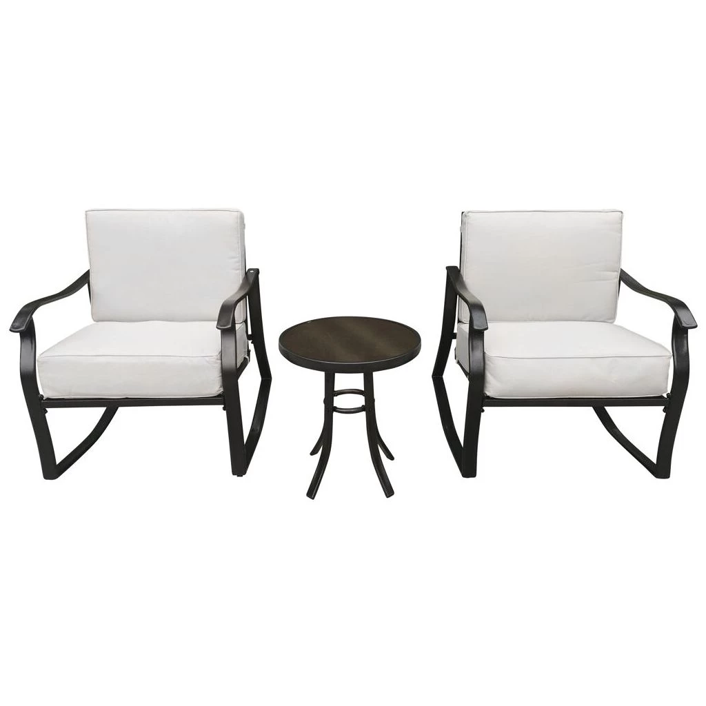 - Set includes 2 rocking armchairs and 1 end table