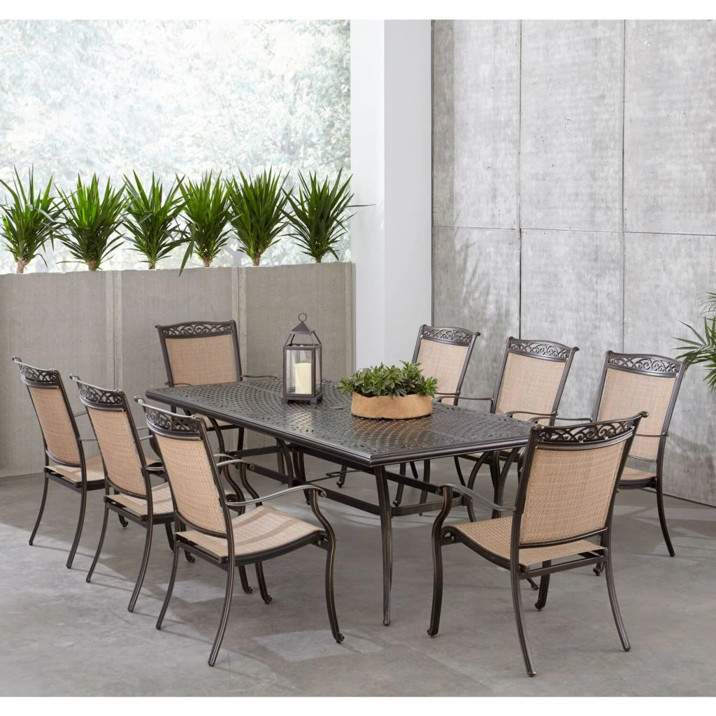 Hanover Fontana 9 pc. Outdoor Dining Set with 8 Sling Chairs and a Cast-Top Table, 42 x 84 in. Table, FNTDN9PCC