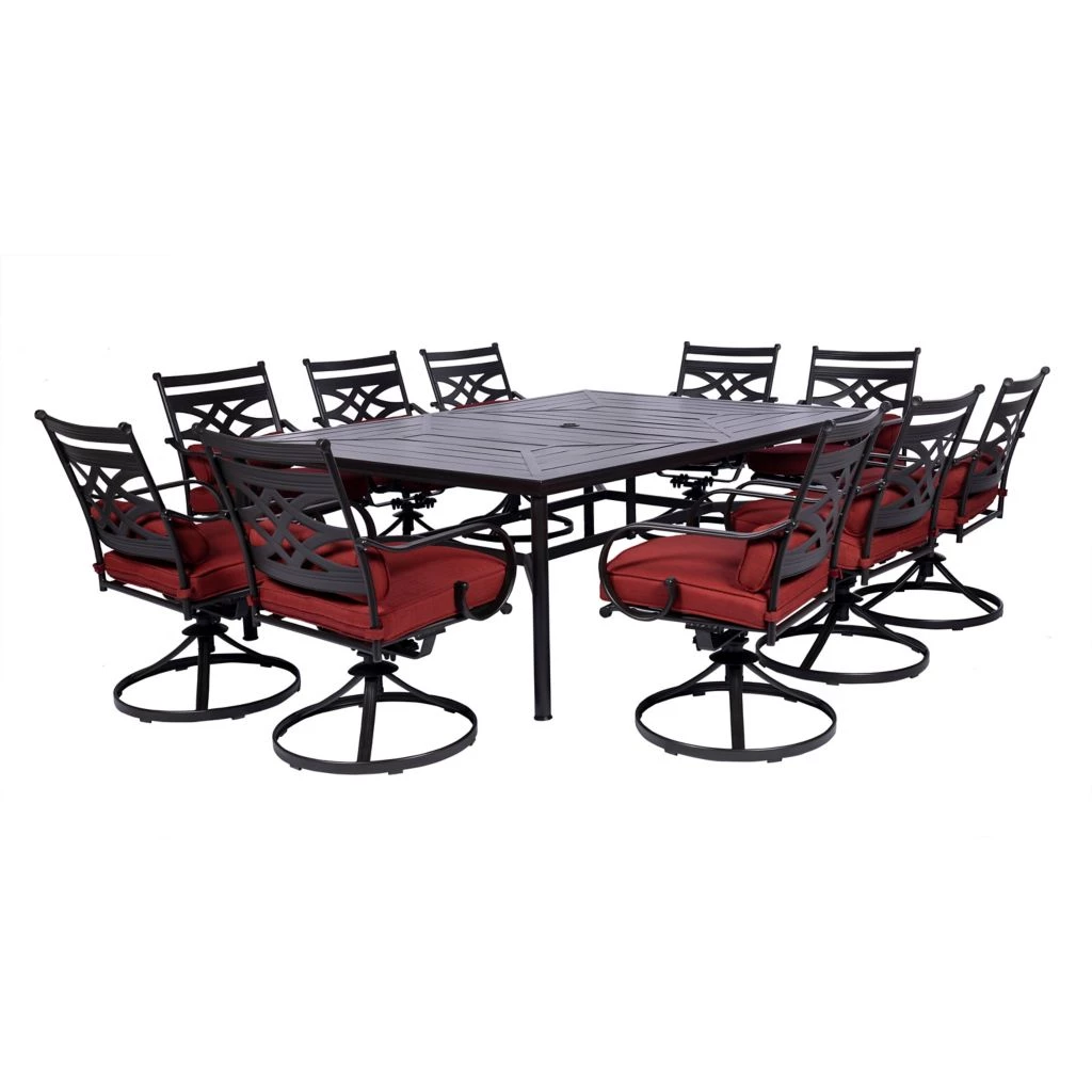 Hanover Montclair 11 pc. Dining Set in Chili Red with 10 Swivel Rockers and a 60 in. x 84 in. Table, MCLRDN11PCSW10-CHL