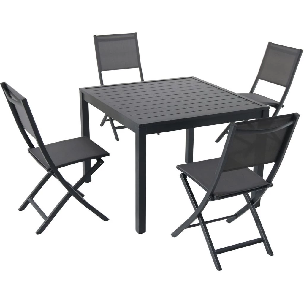 Hanover Naples 5 pc. Outdoor Dining Set with 4 Sling Folding Chairs and a Square Dining Table, NAPDNS5PCFDSQ-GRY