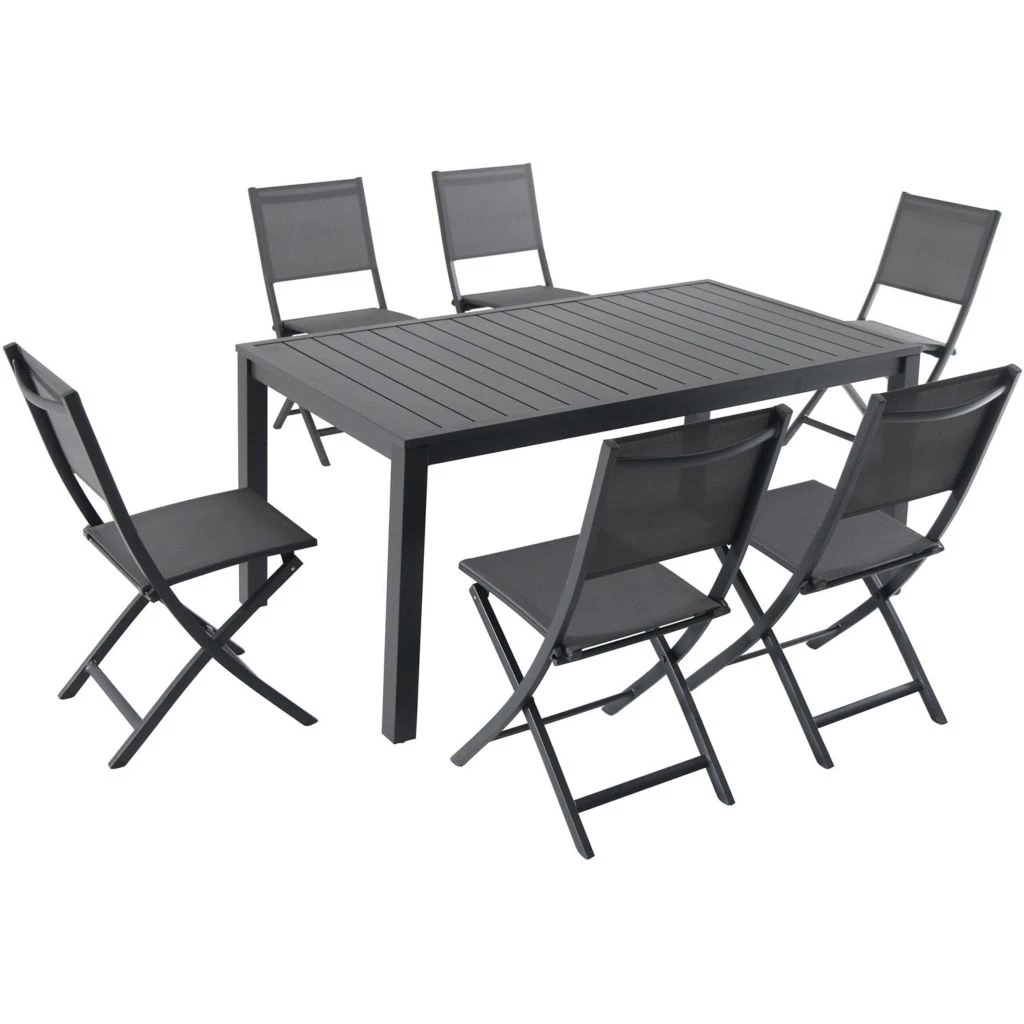 - Set includes 6 sling folding chairs and a slat-top dining table