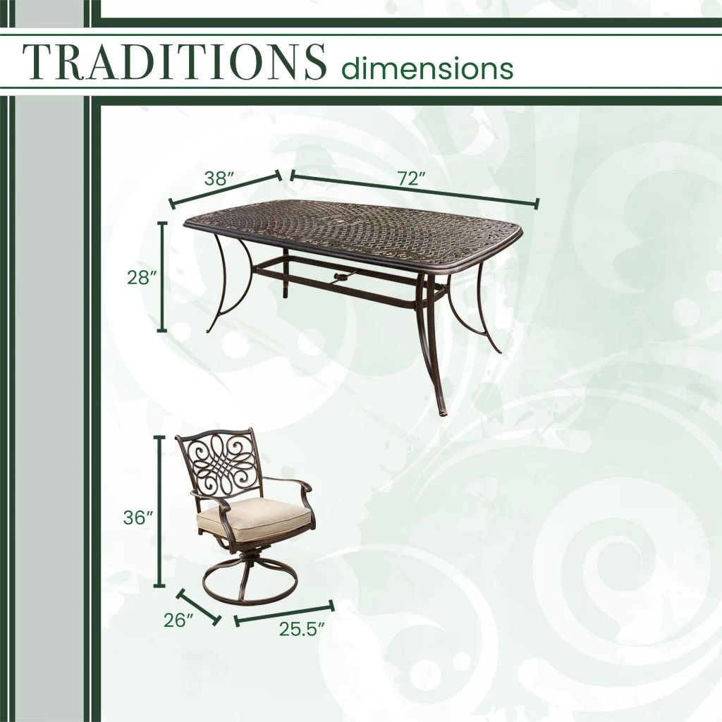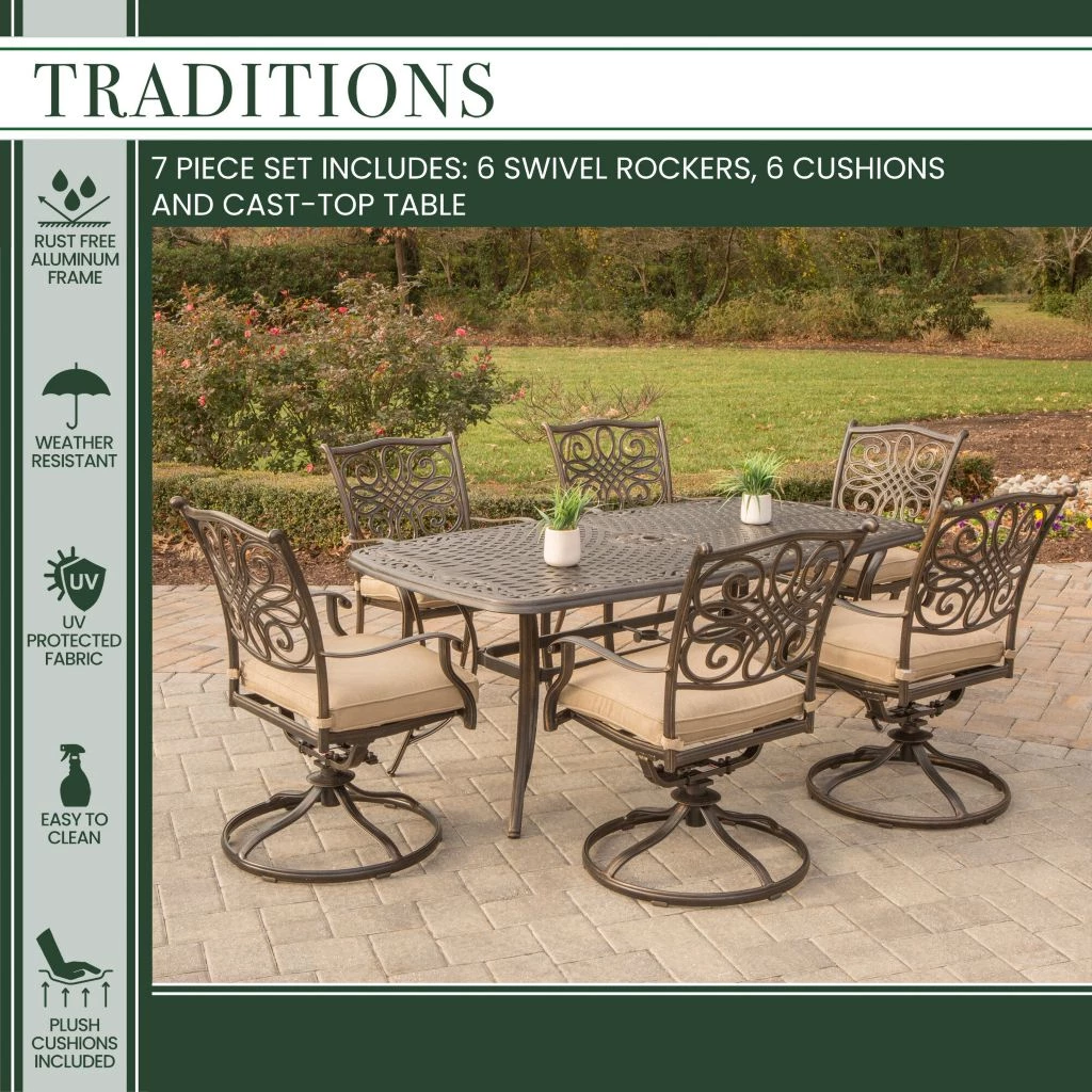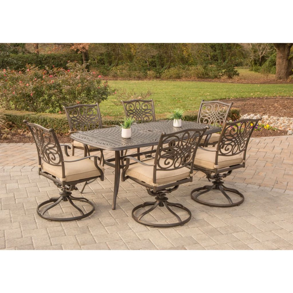 Hanover Traditions 7-Piece Outdoor Dining Set with Six Swivel Dining Chairs & Large 72 x 38 in. Dining Table, TRADITIONS7PCSW-6