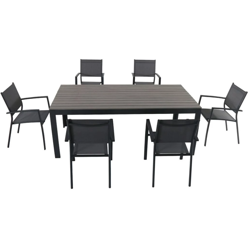 Hanover Tucson 7 pc. Dining Set with 6 Sling Arm Chairs and a Faux Wood Dining Table, TUCSDN7PC-GRY