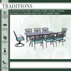 Hanover Traditions 9-Piece Dining Set with Six Dining Chairs & Two Swivel Rocker, TRAD9PCSW2-BLU