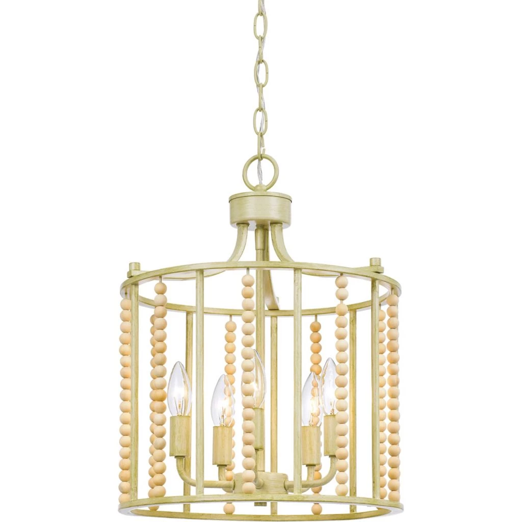 New! Hanover Calliope Semi-Flush Ceiling Light, Antique Cream Metal Finish & Natural Wood Beading, Hardwire Installation Only