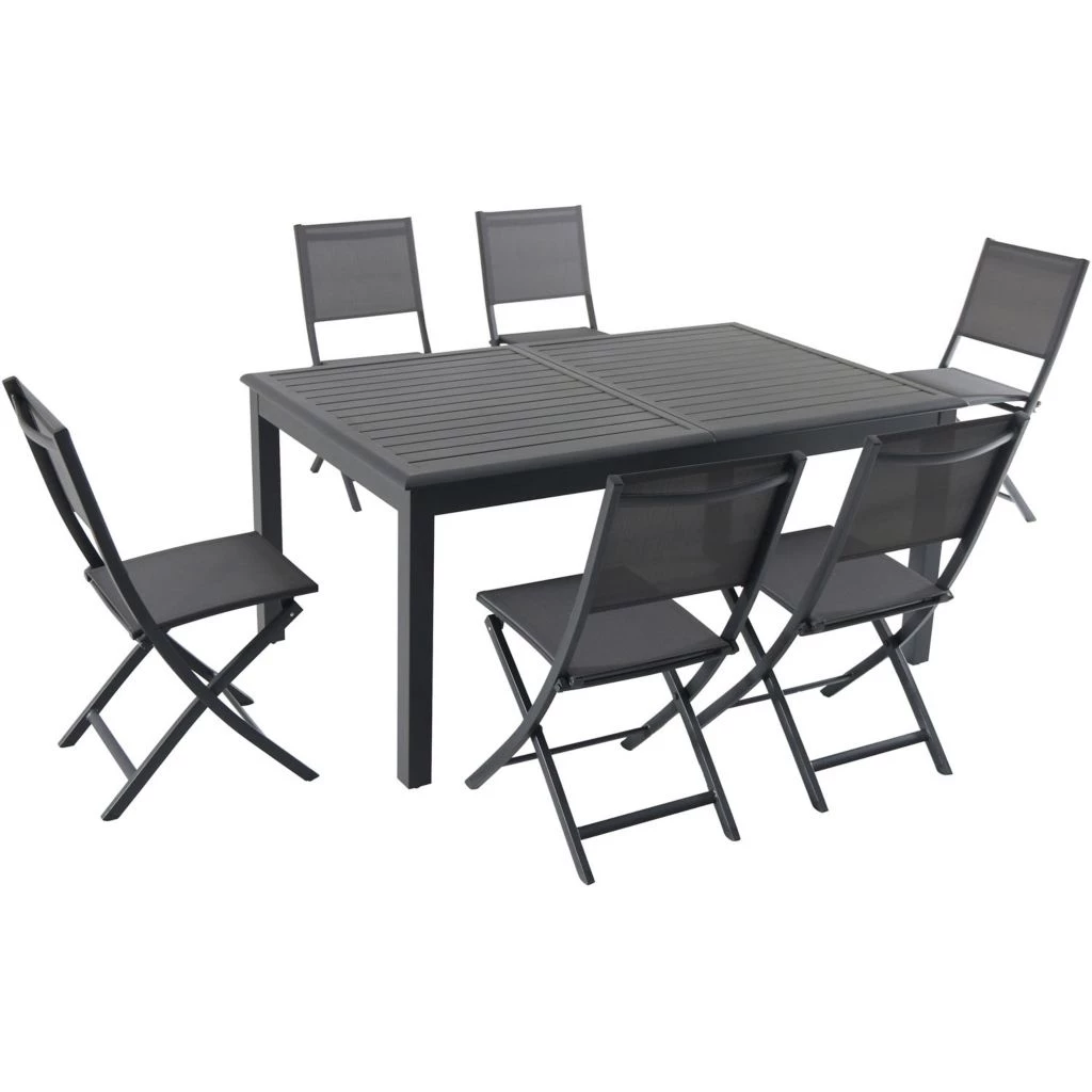 New! Hanover Naples 7 pc. Dining Set with 6 Folding Sling Chairs and Expandable Dining Table, Gray, NAPDN7PCFD-GRY